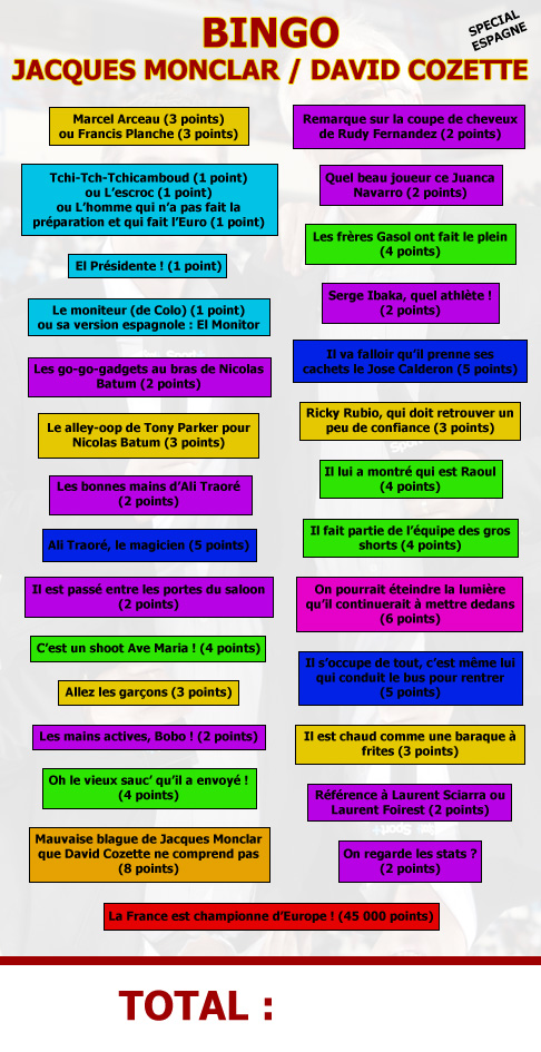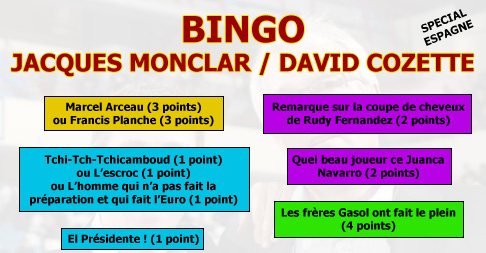 En début d’Euro, nous lancions le Bingo Jacques Monclar/David Cozette, en hommage aux deux commentateurs de Canal+ qui nous ont tant fait vibrer.
