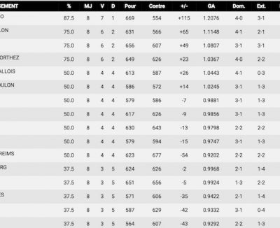 De la même façon, le PL, qui fait pourtant partie du groupe de chasse, est l’une des trois équipes à ne pas encore avoir remporté un match à l’extérieur comme Orléans et Le Portel.
