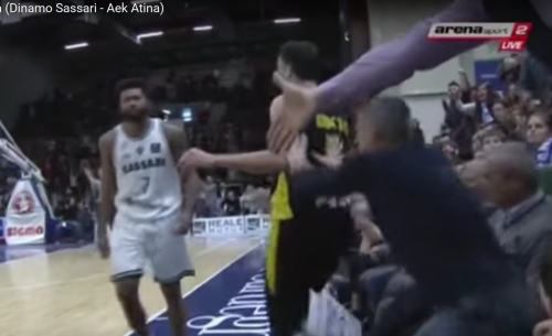 Cela s’est passé lors du match de FIBA Champions League entre le Dinamo Sassari et l’AEK Athènes et cela n’a pas échappé à l’œil du site Sportando.