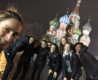 « Le bus s’est donc promené le long de la Volga, a découvert la superbe place Pouchkine, a fait une pause devant la cathédrale du Christ-Sauveur avant de rallier la place Rouge, écrit Le Berry. « L’excitation était grande pour toutes en découvrant la cathédrale Saint-Basile-le-Bienheureux (à l’exception de Clarissa Dos Santos, épuisée, qui est restée dormir dans le bus). Ces vingt minutes de promenade dans une ambiance de colonie de vacances ont semblé faire beaucoup de bien à toute l’équipe. »